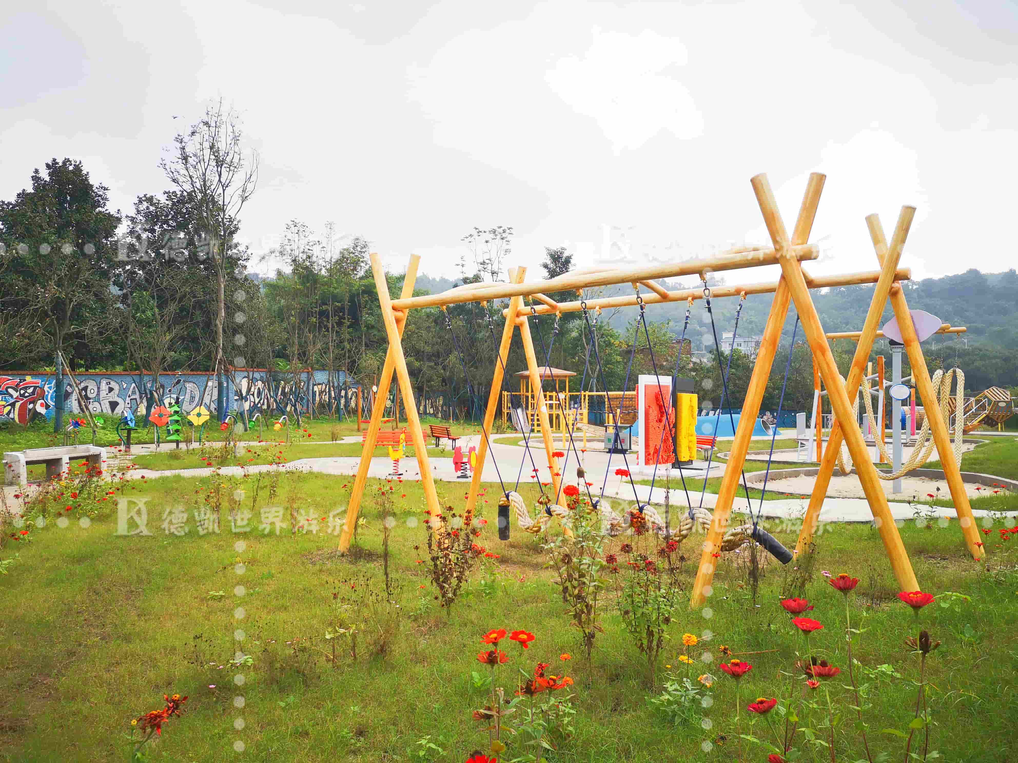 雅居樂花香樂園大型戶外綜合性游樂園,是集兒童戶外休閑、娛樂、教育、競技,探索等一體的兒童娛樂體驗中心。游樂產(chǎn)品根據(jù)兒童娛樂特征設計,造型獨特,趣味益智。主要的游樂設施有:原木無動力競技場、多人轉(zhuǎn)繩、溜索、微地形滑梯組合、蟲洞攀爬、繩索挑戰(zhàn)臺、箱體攀爬、彎管攀爬、大型主題滑梯塔,大型蹦床等等。游玩項目全年齡層都可以參與,充滿挑戰(zhàn)!